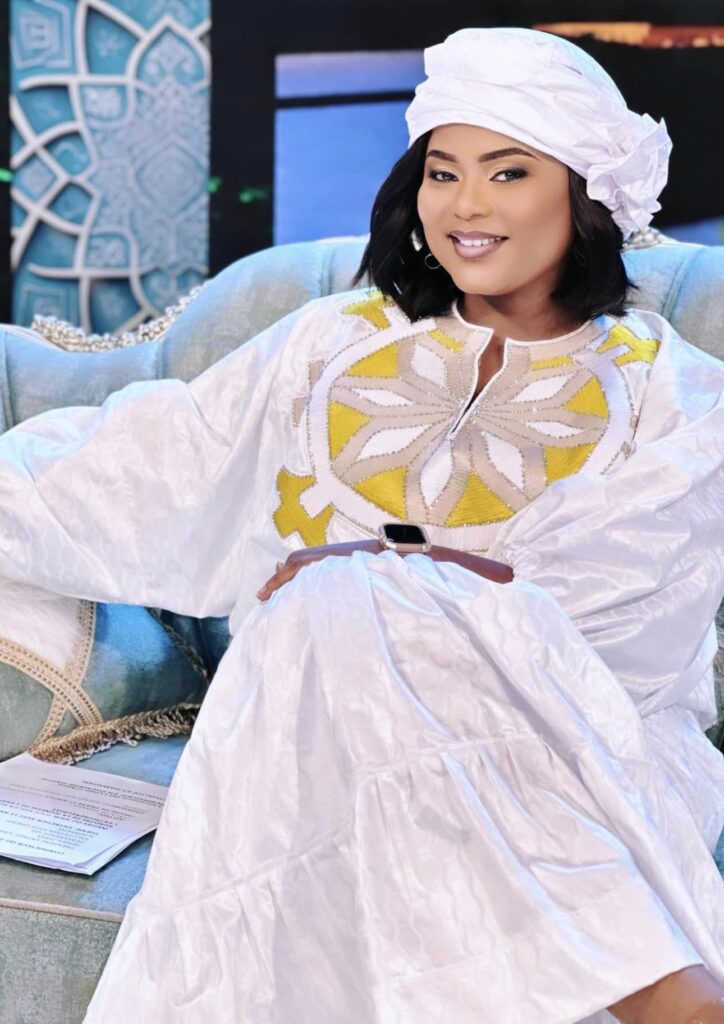 Marry Béye Diouf est une présentatrice télé, écrivain, actrice, égérie, modèle. Amoureuse de la mode, la journaliste a séduit les téléspectateurs de la Tfm avec une robe en bazin de couleur blanche qui lui va à merveille. Make-up simple, teint uniforme et sourire parfait, Merry Béye dégage de la fraîcheur et suscite l’admiration de ses fans