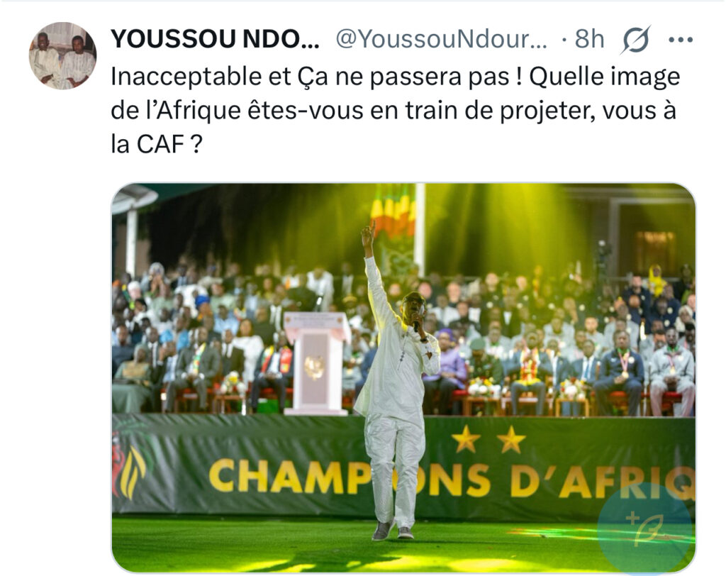 Youssou Ndour a vivement réagi à la récente décision de la Confédération Africaine de Football. « Inacceptable et ça ne passera pas ! Quelle image de l’Afrique êtes-vous en train de projeter, vous à la CAF ? », a-t-il dénoncé, exprimant ainsi son indignation face à une décision qui continue de susciter de vives réactions.