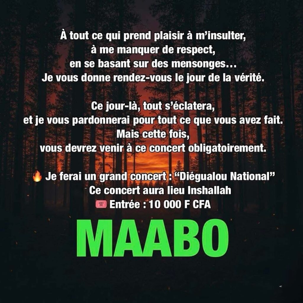 L’artiste No Face crée une nouvelle fois l’événement avec l’annonce d’un grand concert baptisé “Diégualou National”, une initiative qui semble porter un message fort à l’endroit de ses détracteurs.