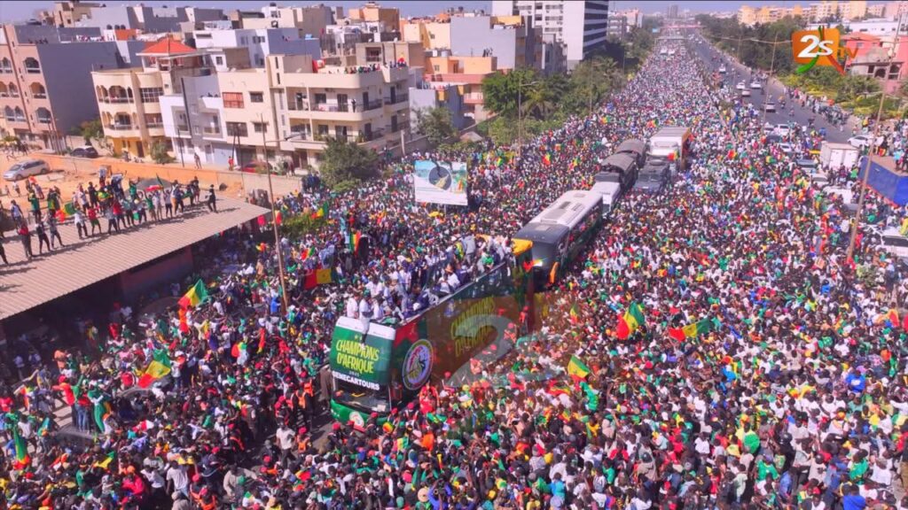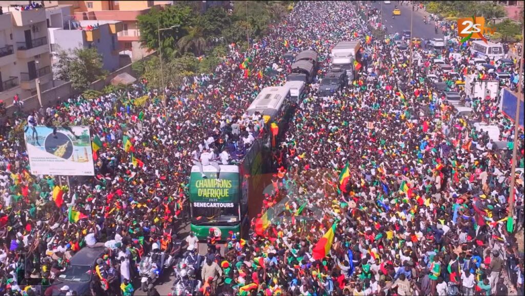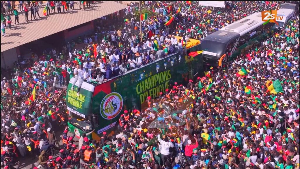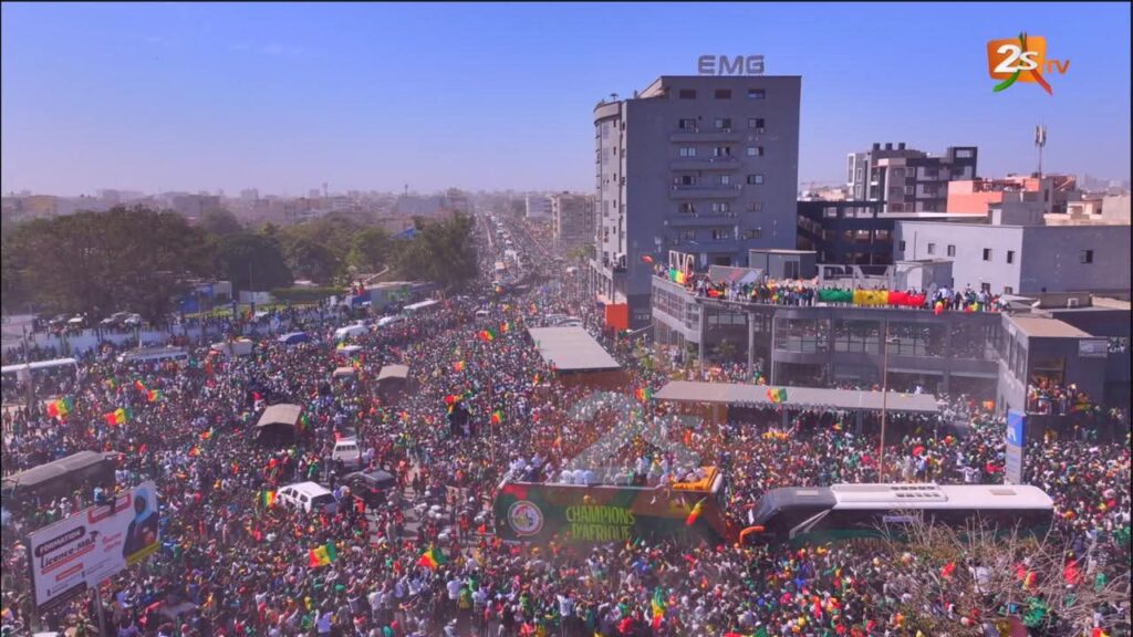 Dakar est en ébullition. Les Lions de la Teranga, sacrés champions d’Afrique, sillonnent en ce moment les rues de la capitale sous les acclamations d’une foule immense. Des milliers de supporters poursuivent le bus de Pape Thiaw et de ses joueurs, en direction du Palais de la République. Chants, drapeaux et scènes de ferveur populaire accompagnent cette parade historique, reflet de la fierté et de l’unité nationales.