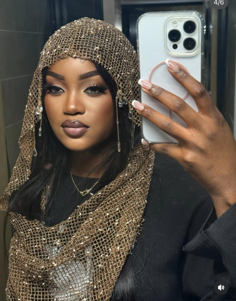 Jarrah Thiès fait sensation sur les réseaux sociaux avec son dernier look ! La chanteuse sénégalaise a partagé un selfie où elle apparaît resplendissante dans un foulard doré scintillant et un maquillage sophistiqué.
