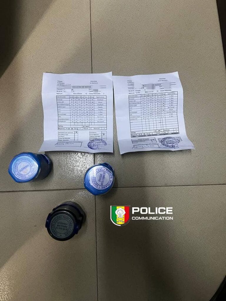 Le document incriminé, produit par un élève dans le cadre d’une procédure de pré-inscription en France, présentait des incohérences manifestes malgré l’apposition de cachets et d’une signature falsifiée. Lors de son audition, l’élève a reconnu avoir acquis ce faux bulletin pour la somme de 15 000 FCFA auprès d’un enseignant, afin de tromper la vigilance des services de vérification.