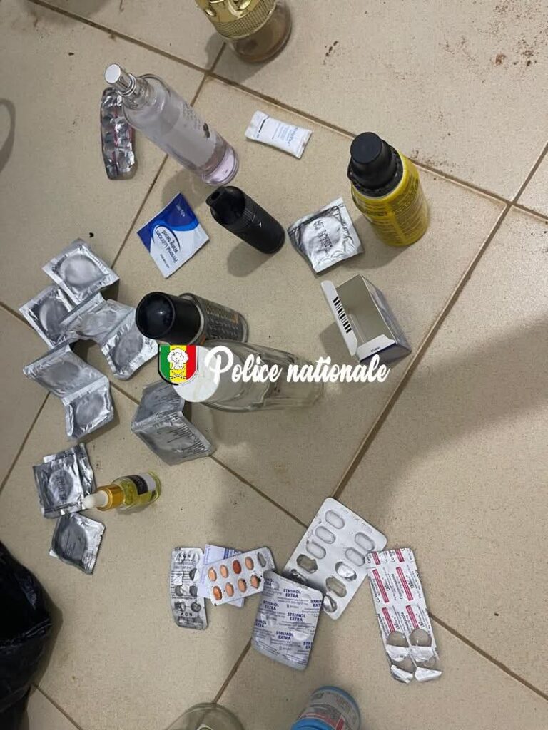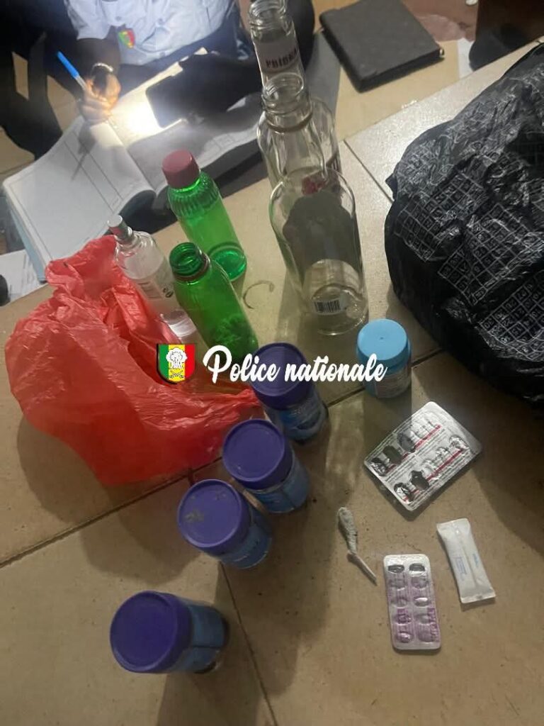 Sur place, les éléments de la police ont procédé à la saisie de plusieurs objets : un cornet entamé de chanvre indien, des savons intimes, lubrifiants, préservatifs, ainsi que deux bouteilles de produits cellulosiques et divers parfums.