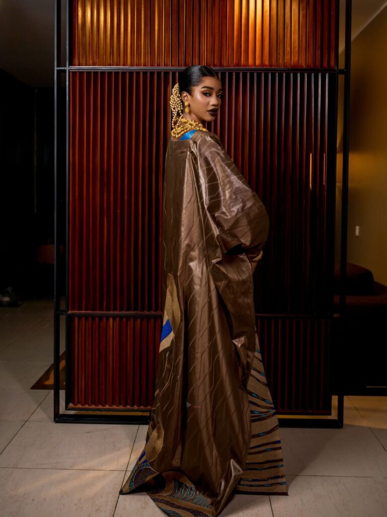 Le choix des couleurs, le maquillage sophistiqué qui met en valeur son regard, et surtout ce port de tête plein d’assurance, transforment cette apparition en un véritable moment de grâce. Il n’en fallait pas plus pour que ses abonnés et les fans de mode traditionnelle s’enflamment en commentaires, multipliant les éloges sur sa beauté et son charisme naturel.