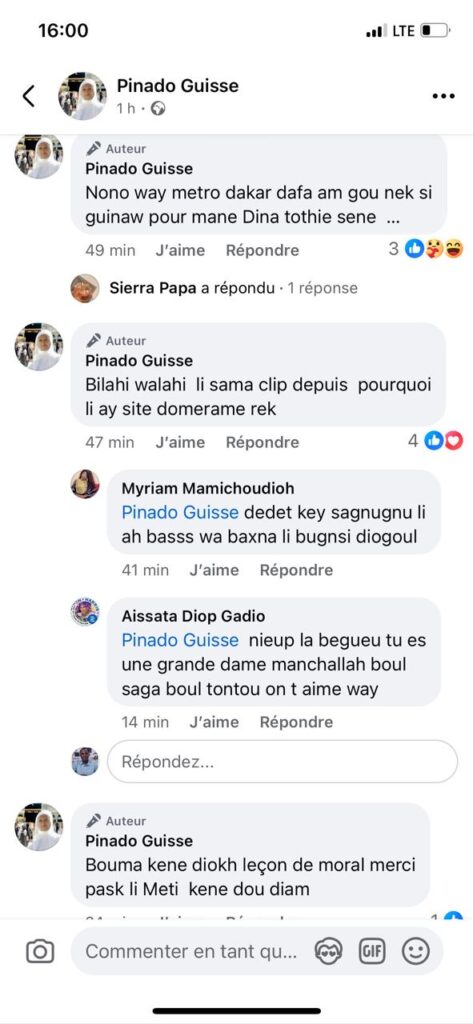 La chanteuse Penda Guissé, rouge de colère, a réagi vivement à une publication du site Metrodakar. Ce site a affirmé que Penda Guissé s’était remariée, en utilisant une photo de la chanteuse en miniature, laissant croire que ce mariage était récent. Penda Guissé a démenti cette information et a exprimé sa colère en proférant des insultes à l’encontre du site.