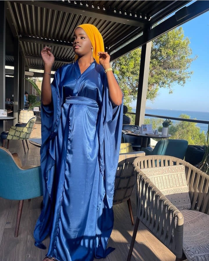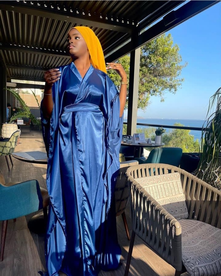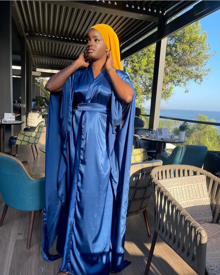 La tik tokkeuse Bk Mu Serign Salihou apparait chic et classe dans une tunique bleue assortie d’un foulard jaune. Deux couleurs très tendances et glamours bien aimées des Sénégalais.