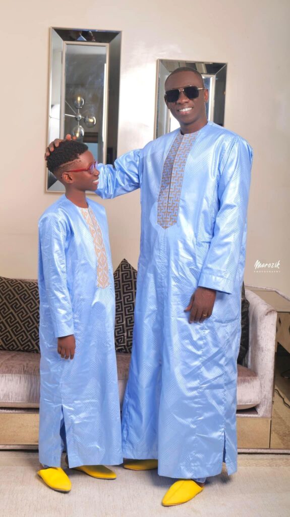 Le chanteur Pape Diouf a sorti le grand jeu. Il s’est affiché dans une tenue traditionnelle de couleur bleue bakha, en compagnie de son fils Mouhamed qui s’est distingué avec la ressemblance de son père.