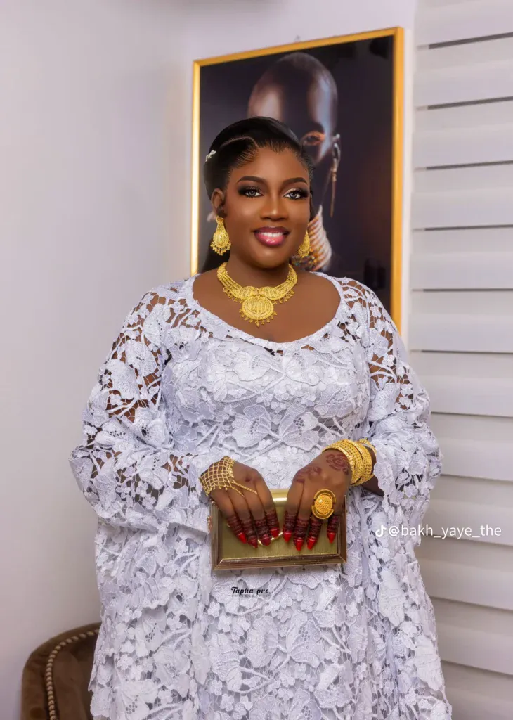 L’actrice Codou, de la série Famille sénégalaise, a baptisé son nouveau-né ce mercredi. Vêtue d’un élégant boubou blanc, la vedette du jour a brillé de mille feux avec sa somptueuse parure en or. Admirez les images !