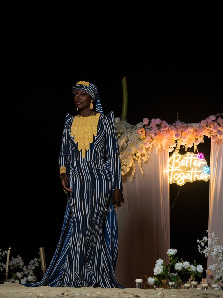 Siteu et son épouse offrent une image forte où la tradition sérère s’exprime avec raffinement. Les tenues, riches en symboles et en élégance, racontent une histoire d’héritage culturel sublimé par la mode contemporaine. À travers cette apparition, le couple célèbre aussi l’amour, celui qui unit deux êtres tout en honorant leurs racines. Une parfaite illustration de l’identité africaine portée avec fierté et complicité.
