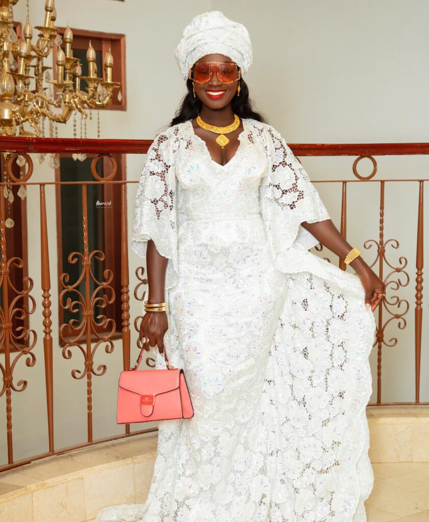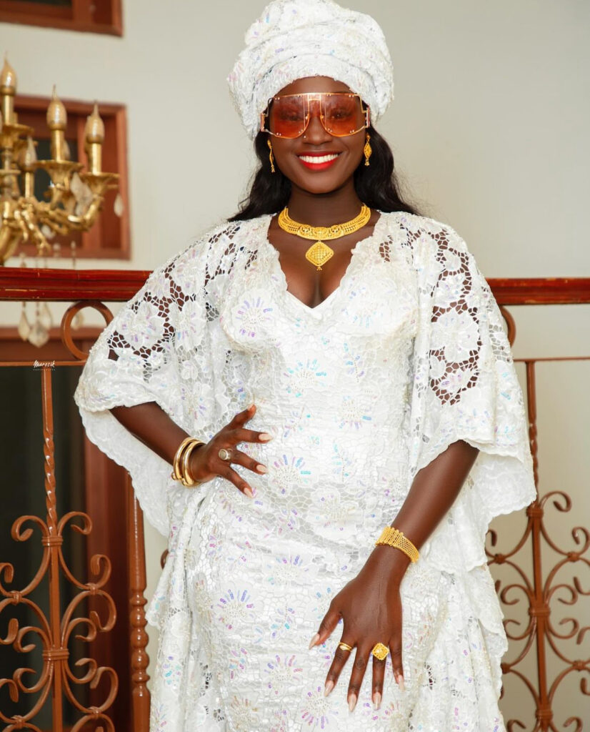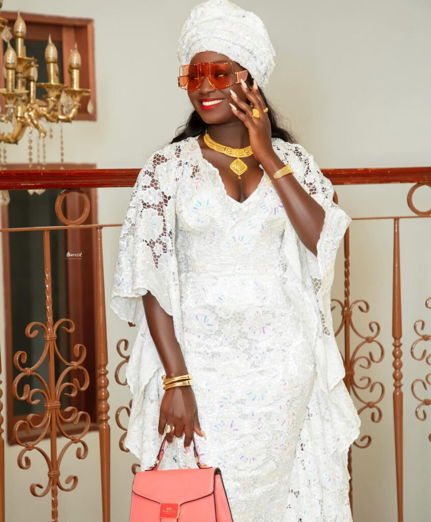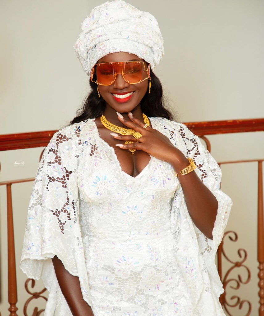 Ndakhté Lo, resplendissante lors du Magal de Touba, a captivé tous les regards par son élégance et son sens du style. La jeune chanteuse, déjà réputée pour sa voix envoûtante, s’est distinguée par une tenue d’une grande finesse : une robe blanche richement brodée qui évoquait à la fois la tradition et la modernité. Ce choix de vêtement, simple mais sophistiqué, mettait en valeur son allure gracieuse. Pour compléter cet ensemble, elle portait une parure en or qui ajoutait une touche de luxe à sa tenue.