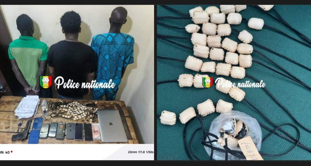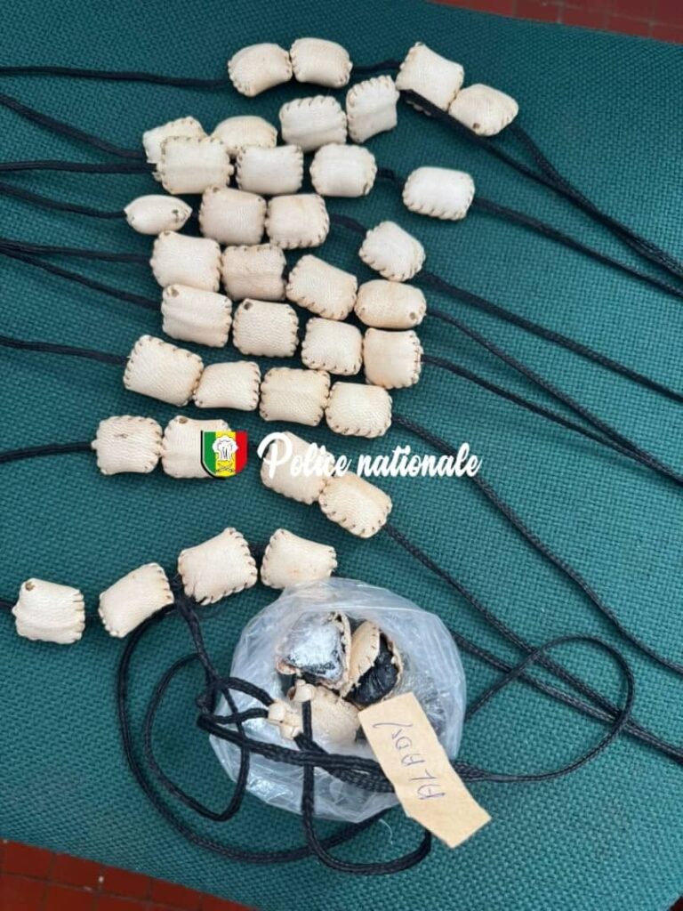 Le 9 novembre 2025, le Commissariat central de Ziguinchor a arrêté trois individus pour association de malfaiteurs et trafic international de drogue, après la saisie de 70 boulettes de cocaïne transportées sous forme de ceintures à amulettes en provenance de la Guinée-Bissau. Les perquisitions ont permis de saisir des téléphones, une moto, de l’argent, un pistolet factice et du matériel informatique. Les suspects sont en garde à vue et l’enquête se poursuit.